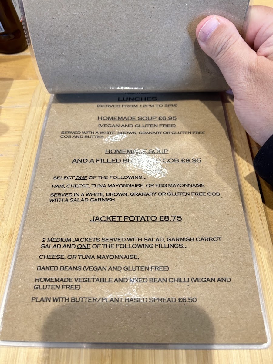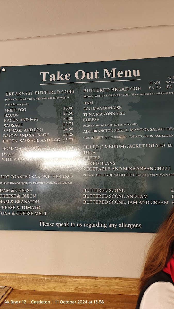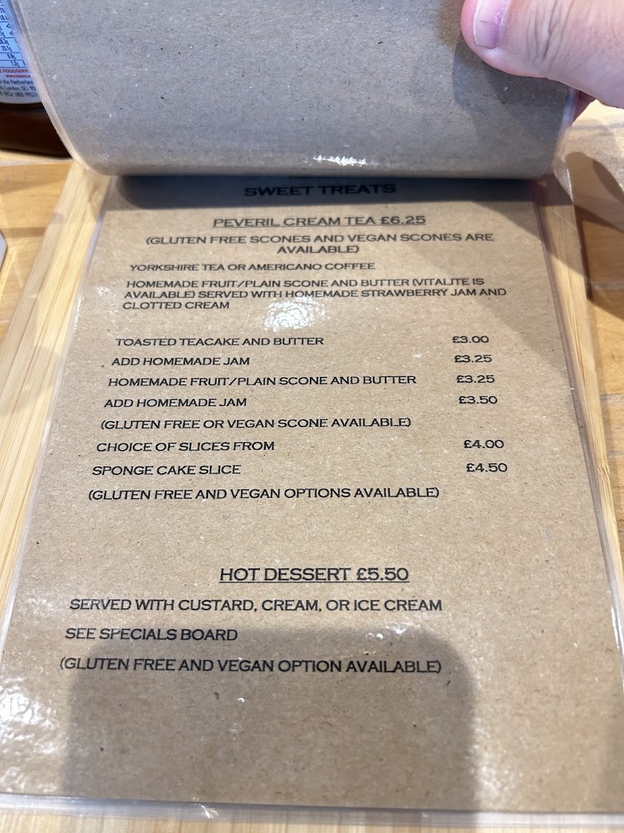 Peveril Tearooms in Castleton offers a cozy and delightful menu that caters to a range of tastes, perfect for a relaxing meal. For breakfast, you can enjoy a hearty Full Breakfast or try the local delicacy, Derbyshire Oatcake. The selection of Hot Toasted Sandwiches is equally tempting, with options like Ham & Cheese, Cheese & Onion, and the classic Ham & Branston. For something a bit lighter, there are Buttered Scone and Buttered Scone and Jam available. The tearoom also offers a variety of Take Away Hot Drinks, including favorites like Latte, Flat White, Mocha, and Hot Chocolate, along with a classic cup of Tea. If you're after a quick snack, they serve Fried Egg, Bacon, Bacon and Egg, Sausage, and Sausage and Egg, perfect for a quick bite. With its mix of hearty meals and comforting beverages, Peveril Tearooms offers a welcoming menu that is ideal for a satisfying breakfast or snack in the heart of the Hope Valley.